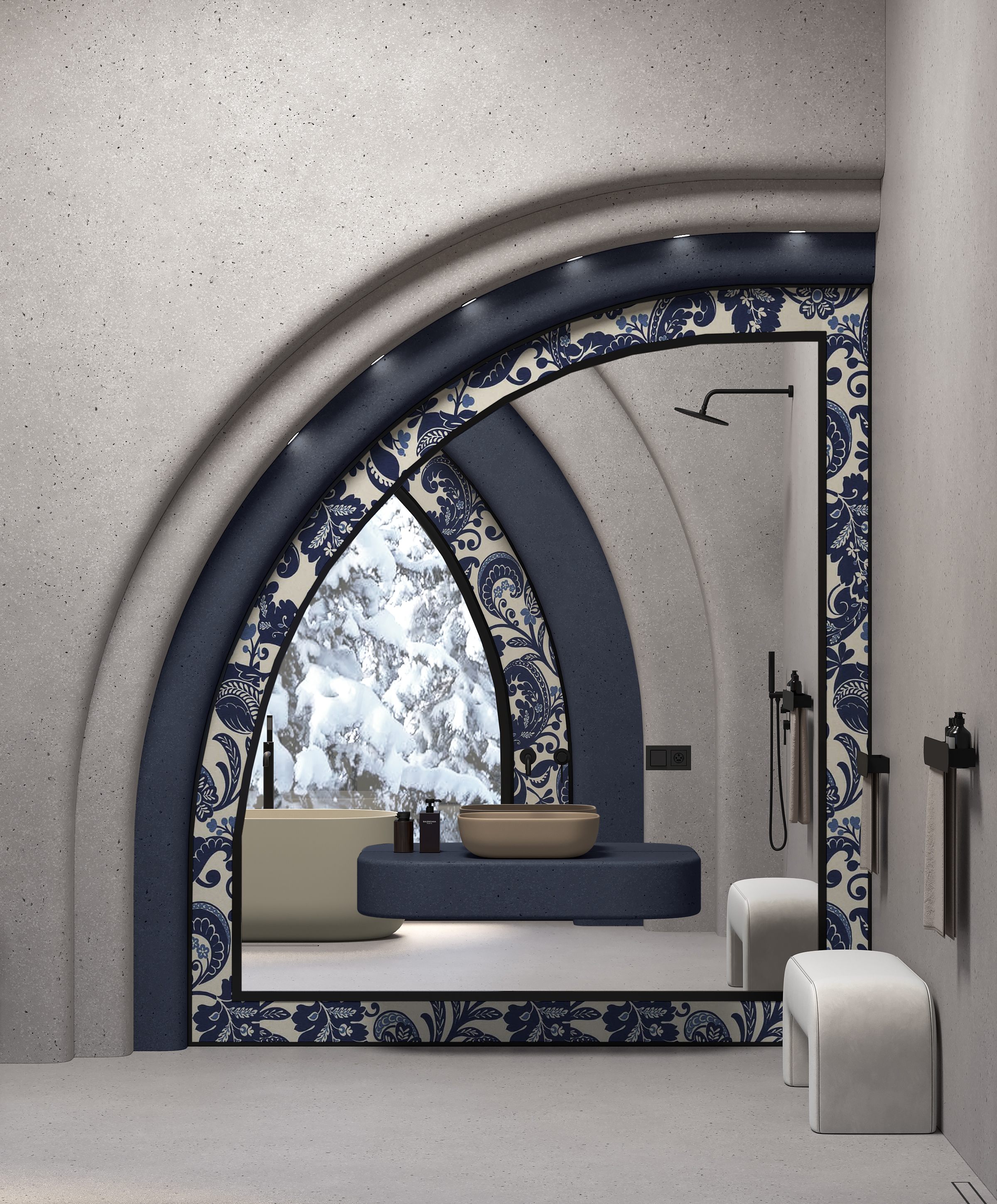 В такой ванной комнате можно легко отключиться от внешнего мира и погрузиться в особую атмосферу.